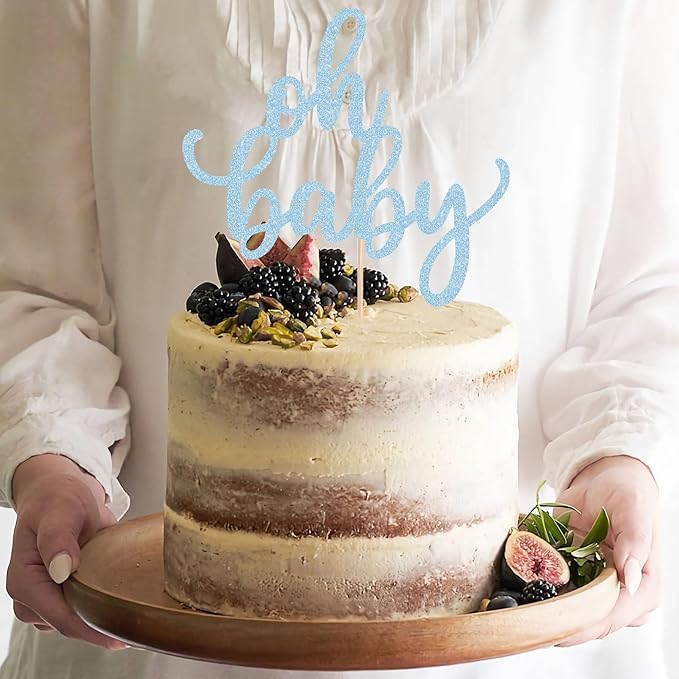 - High Quality Materials: This baby shower cake topper features a light blue flash that shines from every angle. Made of 350 gram glitter card stock and 100% food grade bamboo stick, pre installed in advance, is protected by thick cardboard, not easy to deform and fade. This oh baby sign cake decoration will make your baby shower or gender reveal party shine brightly