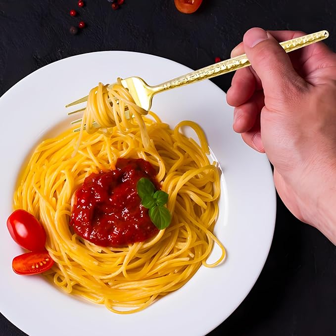 - Metallic texture - hammer pattern design: Elegant, exquisite, shiny, looks like real gold silverware, perfect for all occasions, weddings, Thanksgiving, Christmas, anniversaries, and family reunions.