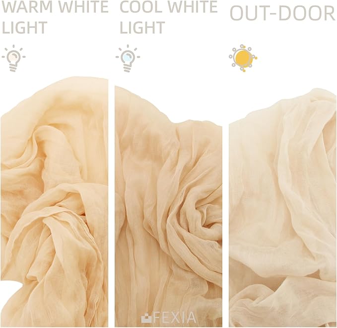 - [Soft Material]: Beige cheesecloth table runner is made of high quality polyester, soft to the touch and the cheesecloth fabric make the table runner sheer enough to swaying in the wind. 123