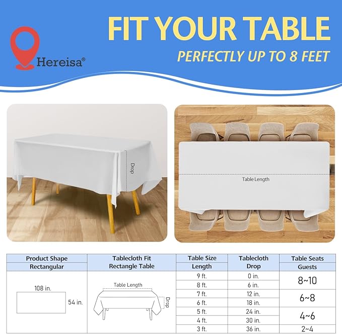 - ✅ 【Banquet-Size Fit】54"x108" dimensions cover 8ft tables with 15" overhang on both sides