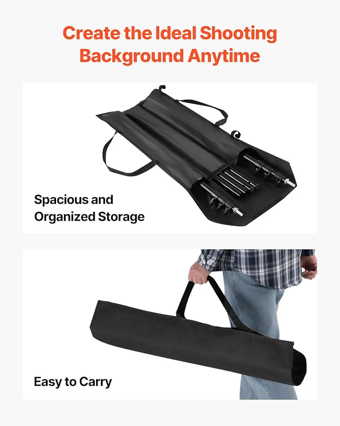 - Easy Setup & Carry: This backdrop holder has spring-loaded pins at each crossbar joint for quick assembly and disassembly, with no tools required. The carrying bag makes it easy to store and transport to set up the ideal backdrop anywhere.