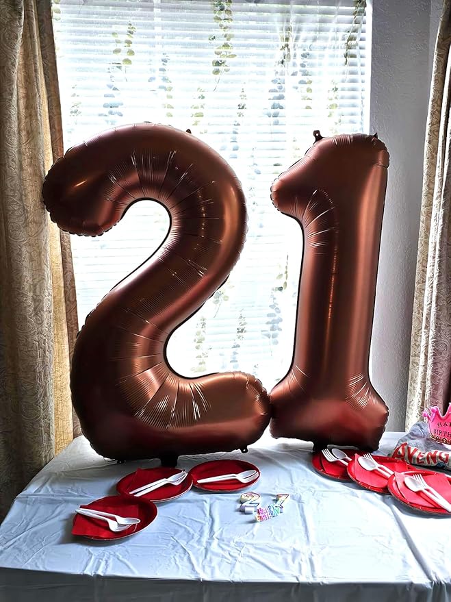 1 Balloon Number 40 Inch Jumbo Mylar Foil Balloons for Girl Boy Men Women, Coffee Brown One Giant Balloons for 1st 1 11 21 Birthday Decorations Baby Shower Photo Shoot