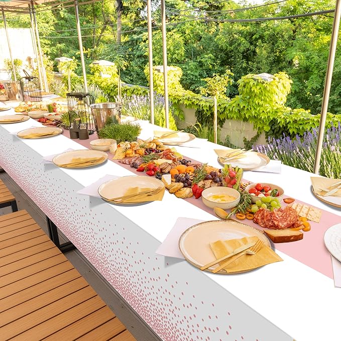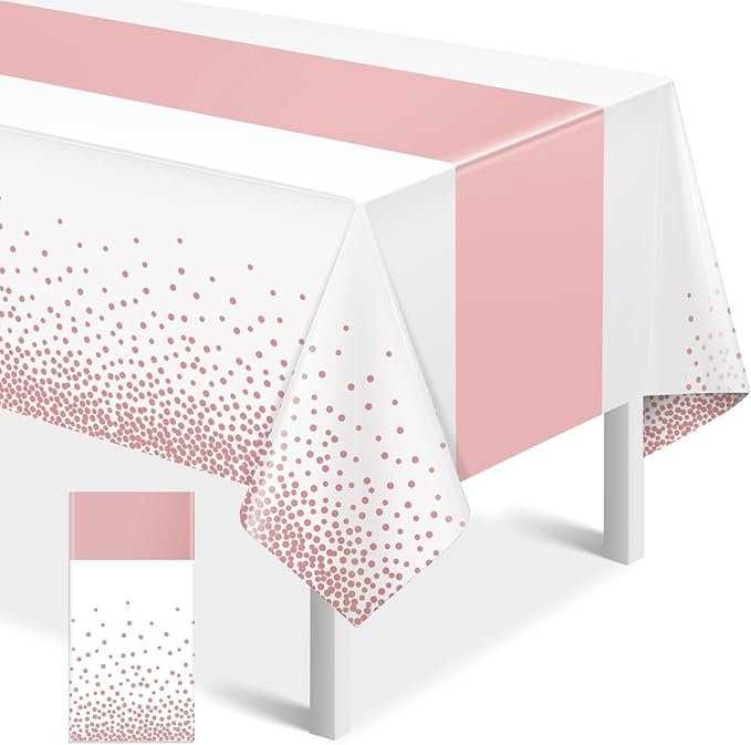 - What will you receive: 1 pieces plastic white and rose gold party tablecloth,all over printed with rose gold dot on white background,the rose gold table runner in the middle is printed pattern,ideal for decorating your graduation birthday party supplies and decorations