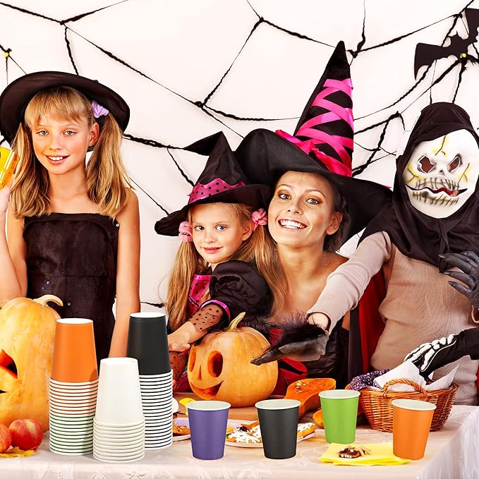 - Save time with easy cleanup: our disposable paper cups offer the ultimate convenience by eliminating cleanup time; simply toss these Halloween party paper cups in the trash after use, saving you time and energy; enjoy more precious, joy-filled moments with family and friends without the hassle of washing dishes