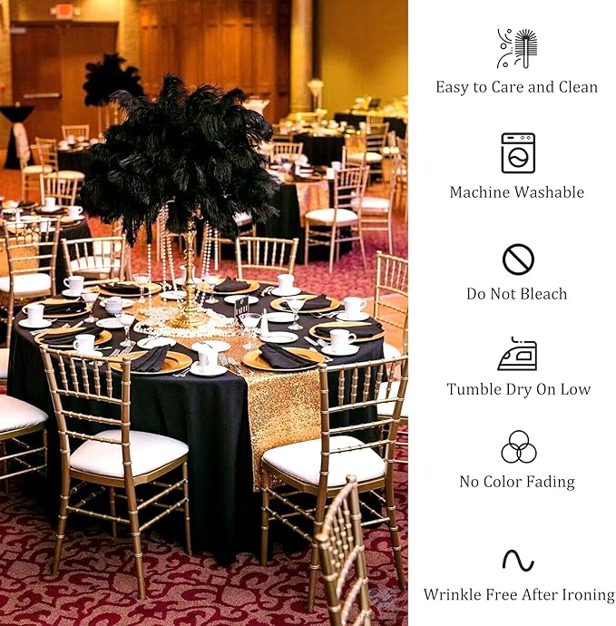 - Package Include: you will get 12 pieces black polyester round tablecloth, enough quantity is suitable for wedding banquets and various parties, the size of each tablecloth is approximately 90 inches / 229 cm, which is large enough to cover 30" or 45" round tables, classic in color and exquisite in design, the solid color makes them suitable for various occasions, instantly heightening the elegance of your table.