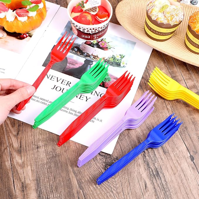 - Disposable Colorful Forks: you will receive a total of 360 pieces of disposable plastic forks, including 5 colors, which are red, yellow, green, light blue, purple, sufficient quantity and rich colors ensure you make well prepared for party, it will bring elegance to your table setting