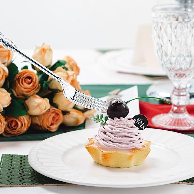 - MULTI-SCENARIO USE: With these elegant utensils set, you can spend more time with family and fully immerse yourself in the festivities without the stress of washing up! These silver flatware perfect for your parties, picnics, birthdays, weddings, holidays, and more