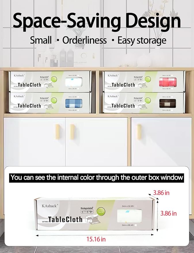 - 【Slide cutter to choose your size】The 54 inch x 32.8 ft red plastic table cloth disposable roll can be cut to size and fitted for rectangle, square, round, or oval tables. Customize the perfect fitting tablecloth for any table.The table cloth is neatly rolled up in a handy box,You can see the internal color through the outer box window.