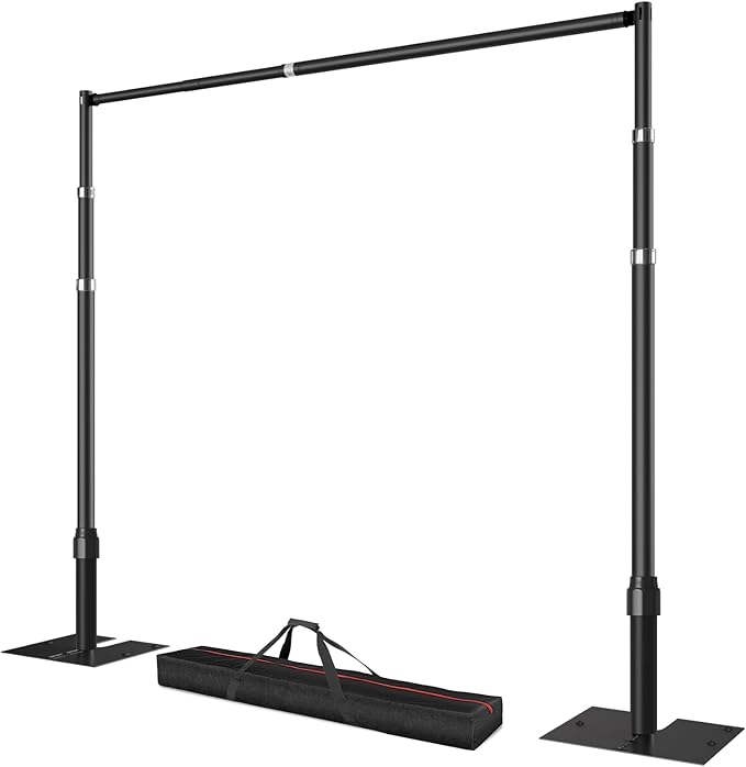 - 【Convenient Installation】The backdrop stand kit includes 2 adjustable poles, 2 heavy-duty bases, 2 sets of locking pins and screws, 1 customizable crossbar, and a carrying bag. Assembly instructions are included. Even when assembled by one person, no additional tools are required, and setup takes less than 5 minutes