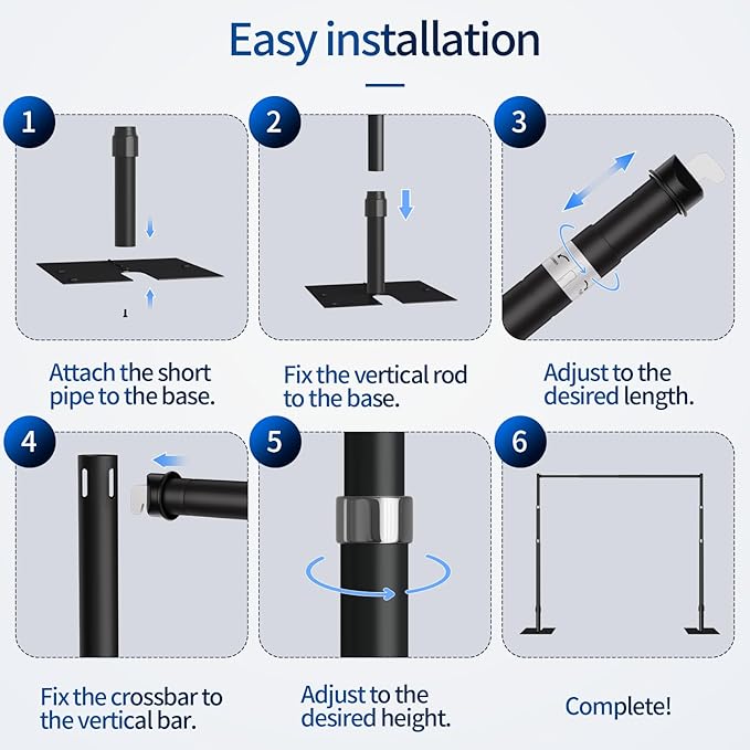 - 【Multiple Application】 Suitable for wedding, parties, birthday, photography, photo shooting, baby shower, exhibition, trade show, video studio, bid events and more indoor or outdoor occasions. You can hang curtains, backdrops, balloons, flower walls, vine walls, string lights and other decorations