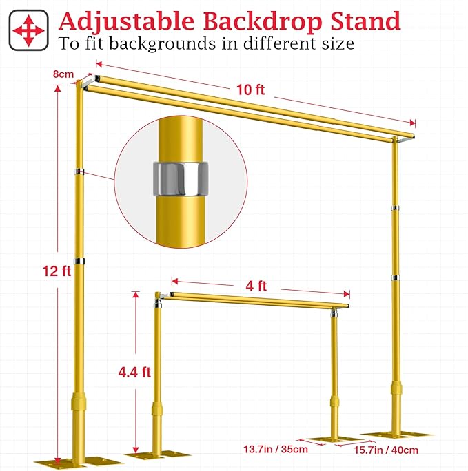 - 【Adjustable Backdrop Stand】The Pipe and drape backdrop stand can be freely assembled into different sizes according on your needs