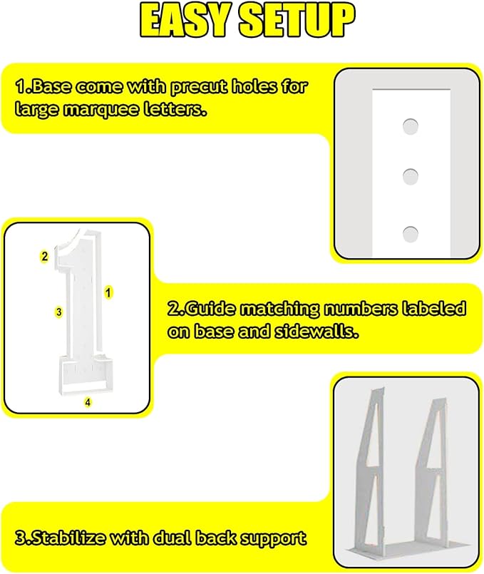 - 【4FT MxARQUEE SIGN 】Package includes a pre-cut number foam boards, a set of dual back supports, bulbs string lights and double-sided tape. Each Letter measures about 47" x 24".