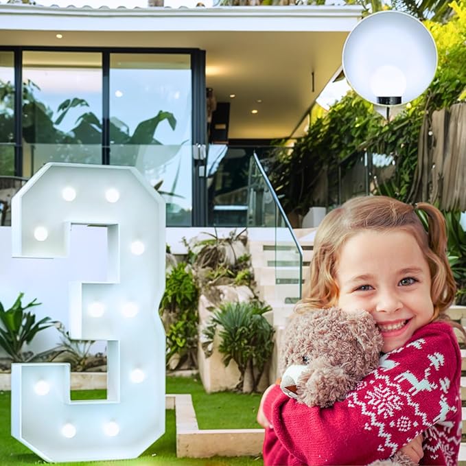 4FT Marquee Light Up Number, Giant Large Number PRE-CUT Foam Board Sign DIY Party Decor for Wedding, Birthday, Anniversary, Graduation, Holiday&Home Supplies (Number 3)