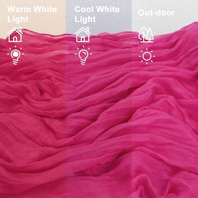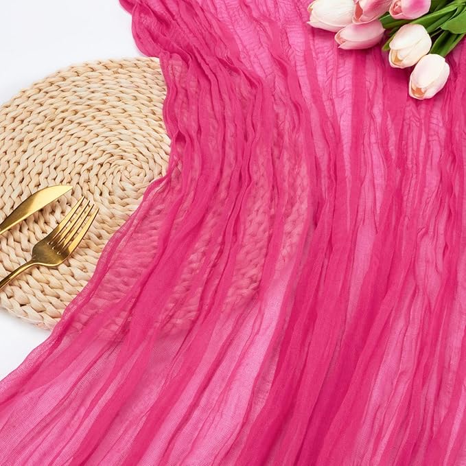 - [Soft Material]: Rose Red cheesecloth table runner is made of high quality polyester, soft to the touch and the cheesecloth fabric make the table runner sheer enough to swaying in the wind.