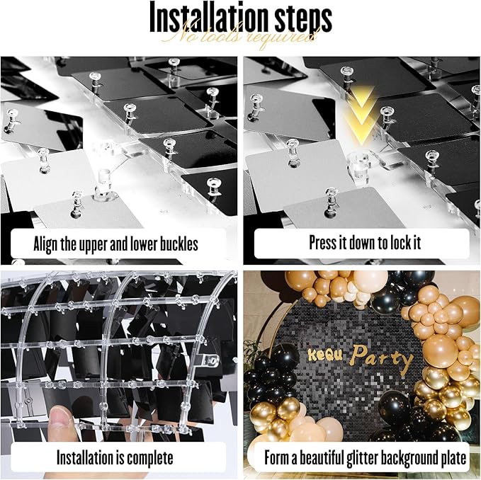 - 【Great Value Packaging】48pcs high-quality shimmer sequin panels, 50 zip ties, 12 wall hooks, and a pack of spare sequins for added convenience. Comes with an easy-to-follow installation manual. Note: Balloons are not included.