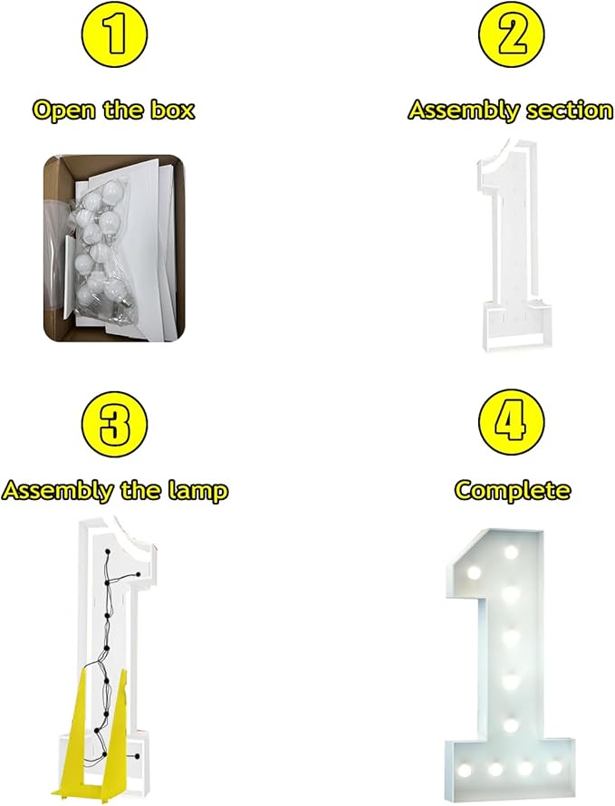 - 【4FT MARQUEE SIGN 】Package includes 2025 pre-cut foam boards, a set of dual back supports, bulbs string lights and double-sided tape. Each Letter measures about 47" x 24".
