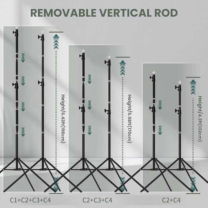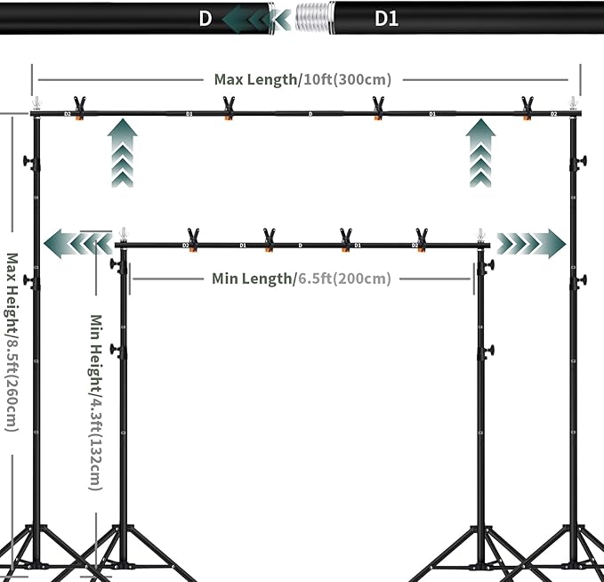 - 【EASY TO ASSEMBLE】: The backdrop stand can be assembled and disassembled quickly, simple and time-saving, best choice for photographers. Note:Due to gravity, it is not recommended to hang anything too heavy.