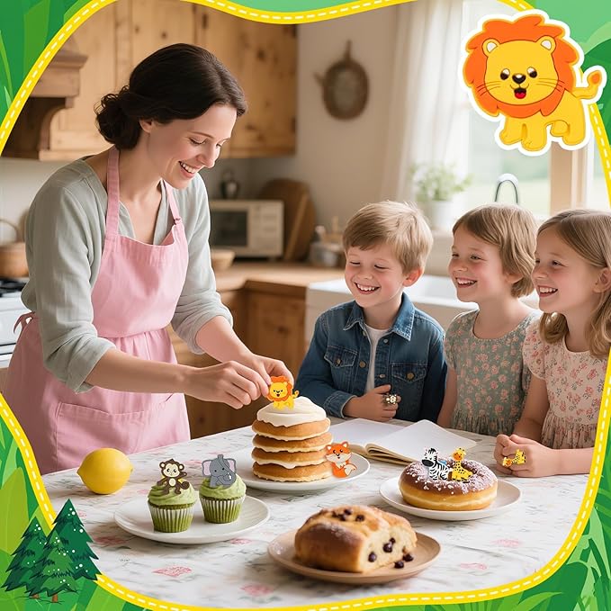 - High-Quality & Safe Materials, Not Edible: The jungle animal cupcake toppers are made from durable, food-safe materials, these cupcake toppers are designed to last through your party and provide a safe addition to your treats. The toppers are lightweight yet sturdy, ensuring they stay securely in place on cupcakes, cakes, or other baked goods.