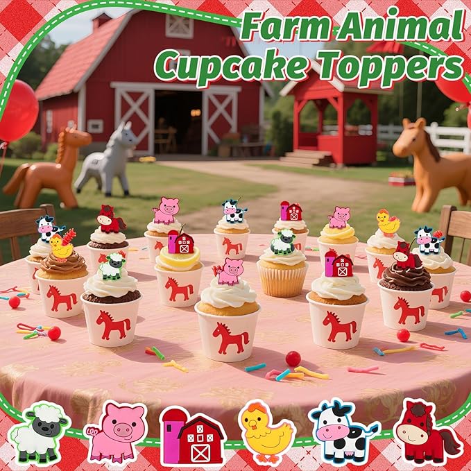 - Farm Theme Party Supplies:Make a special party with these 6 styles of animals cupcake toppers. Every cartoon pattern was designed for farm theme party. Whether you're a professional party planner or a home baker, these farm animal cake topper make the perfect finishing touch.