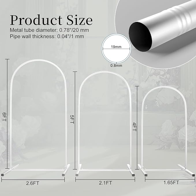 Metal Arch Backdrop Stand Set of 3, Heavy-Duty Balloons Arch Frame for Wedding Ceremony, Party, Baby Shower, Birthday Decorations (White, 4ft+5ft+6ft)