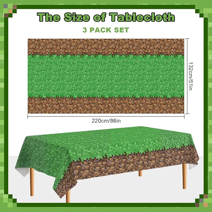 - Unique Game-Themed Design:With a vibrant green hue and game-inspired patterns, the tablecloths can instantly immerse guests in a fun gaming atmosphere. Whether it’s a game-themed birthday banquet, video game tournament, or green-themed event, they will serve as eye-catching decorations to help create unforgettable memories