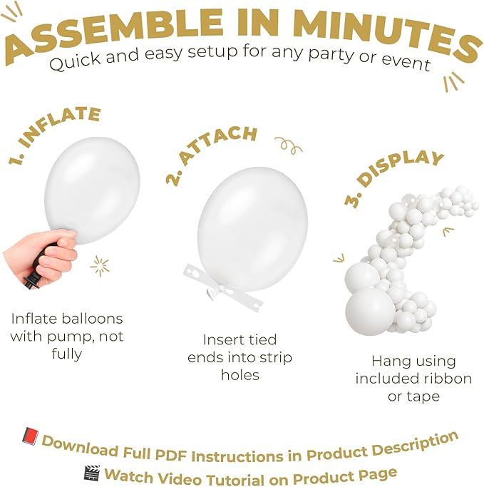 - 🛠️ Easy DIY Setup in Minutes. Create your balloon garland or arch quickly and easily with the included 16 ft balloon strip and a roll of glue dots. No special skills or tools needed—just inflate and decorate!