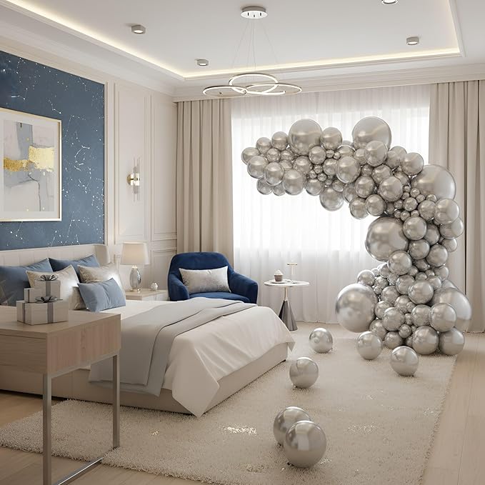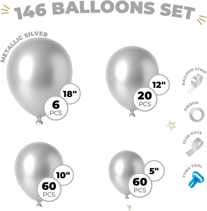 Balloon Garland Arch Kit – 146 Pcs Metallic Silver Balloons for Baby Shower, Birthday, Gender Reveal, Wedding Party – DIY Kit by Vellax™
