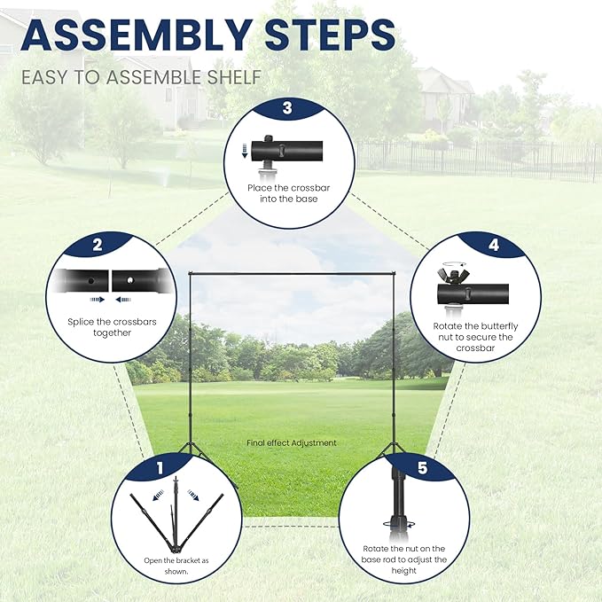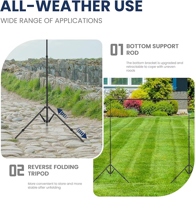 - 5. 【Easy to Transport & Ideal for Multi-Scene Application】 The entire photography back drop stand is designed for easy transport and storage. The detachable poles and collapsible tripods fit neatly into the included carrying bag, making it perfect for on-the-go events. Ideal for wedding photo backdrops, birthday party decorations, graduation ceremonies, commercial displays, and studio photoshoot.
