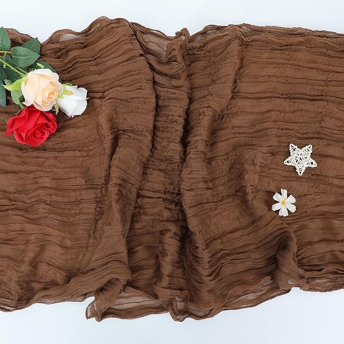1 Pack Cheesecloth Table Runner Rustic Sheer Boho Gauze 35 x 120 Inch Centerpiece Cheese Cloth for Bridal Baby Shower Summer Spring Decorations Brown