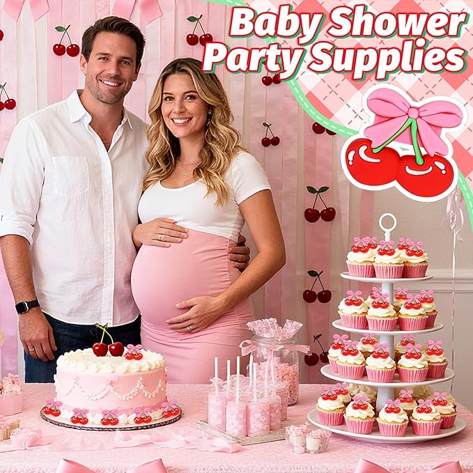 - Widely Use: Cherry bow cake toppers can be applied in baby shower, birthday party, bridal shower, bachelorette party, wedding and other fruit theme parties. Theses sweet cake toppers will bring a playful atmosphere to any dessert table, fit for ice cream, fruits, cookies and other desserts.