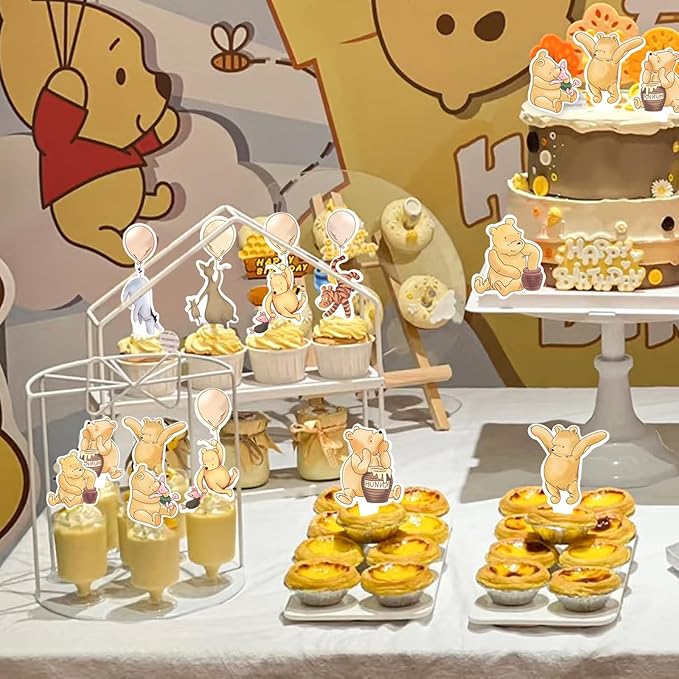 - 🎉Versatile Decorations- Ideal for a variety of occasions, including Winnie themed baby showers, birthdays, or welcome baby parties. These toppers are perfect for cakes, cupcakes, or other treats.
