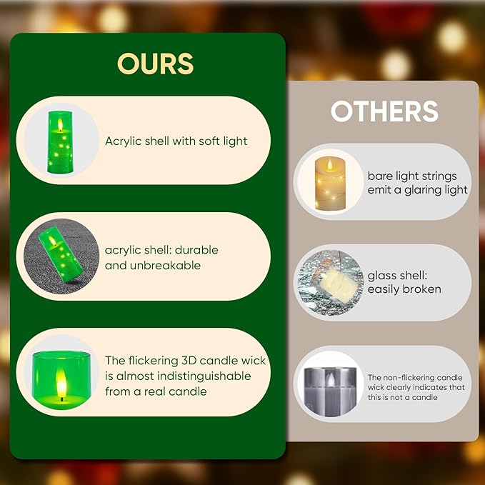 - 【Safe & Flameless】: These flickering Flameless candles offer the beauty of traditional candles without the risk of an open flame. Enjoy peace of mind as they provide a safe option, especially in homes with children or pets where you don't have to worry about fire.