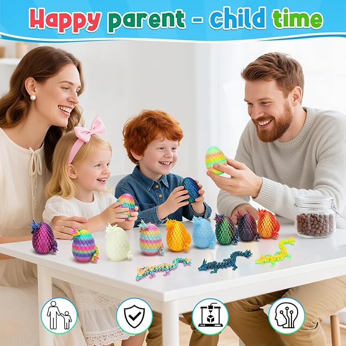 12PCS 3D Printed Dragon Eggs with Dragon Inside, Small Stocking Stuffers for Kids, 3D Printed Animals Dinosaur Eggs Fidget Toys for Teens, Fun Christmas Decorations Gifts for Girls Boys Party Favors