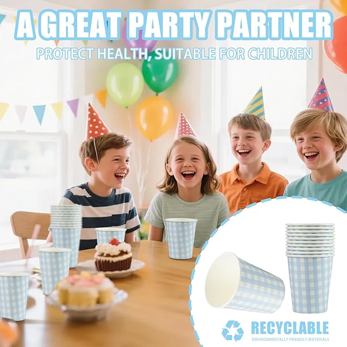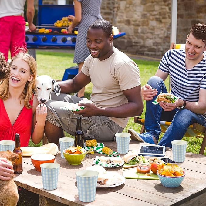 - 【Premium Material】The blue gingham cups are made of quality paper material, sturdy and safe, not easy to tear or deform, environmental-friendly and recyclable. Whether it's hot coffee or cold drinks, offering you a reliable experience.