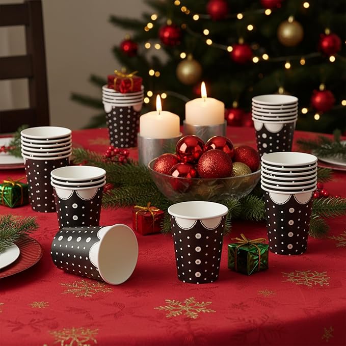 - Food Safe Water Based Ink Prints: the “black dress and white polka dot” pattern on the cups is printed, non toxic water based ink that meets food safety standards; The prints are clear and bright, with a smooth touch that won't fade or smudge even when in contact with moisture; You can use the cups to hold snacks or drinks without worrying about ink transfer, making them safe for both adults and kids to use at parties