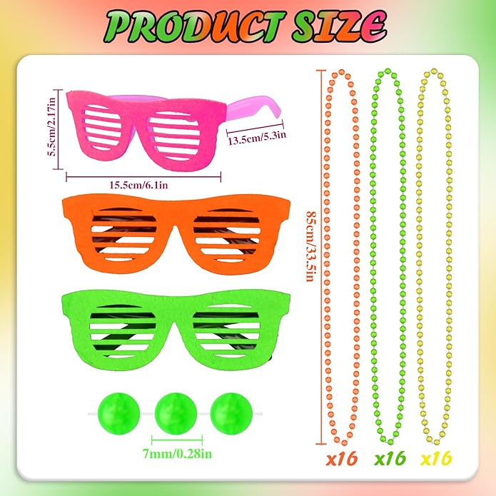 - Versatile Sizes and Styles: The neon bead necklaces are a universal 33 inches, The glasses are 5.9 inches, perfect for most adults to wear; you'll share these glow necklaces with friends and family as memorable party favors and glow in the dark party supplies