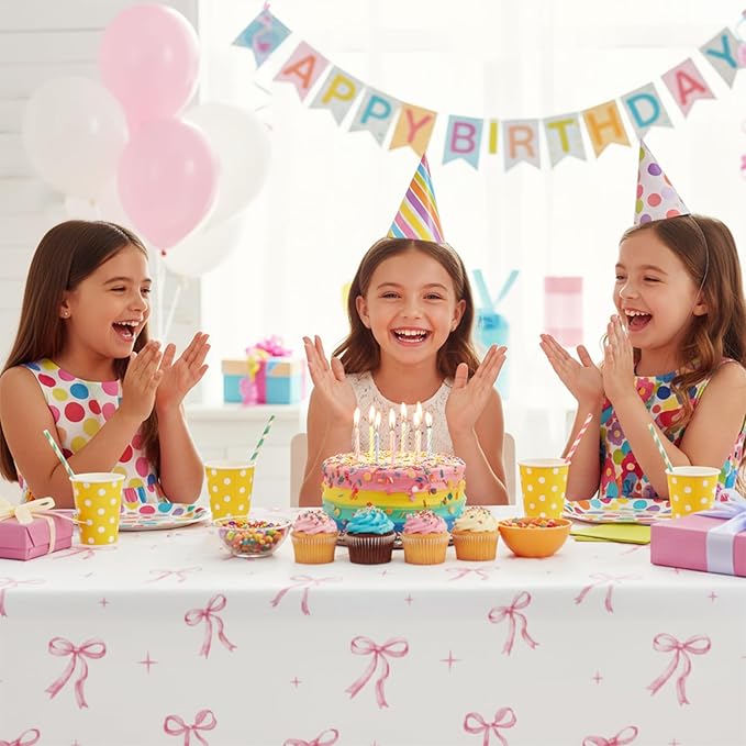 - Perfect for Pink Bow-Themed Celebrations: Ideal for girls’ birthdays, baby showers, tea parties, ballet parties, or coquette-inspired events. Whether you're creating a soft, elegant setup or planning a charming pink bow birthday decorations theme, these bow tablecloths bring a refined and adorable style that guests will love. A must-have addition to any pink tablecloth collection for coquette lovers
