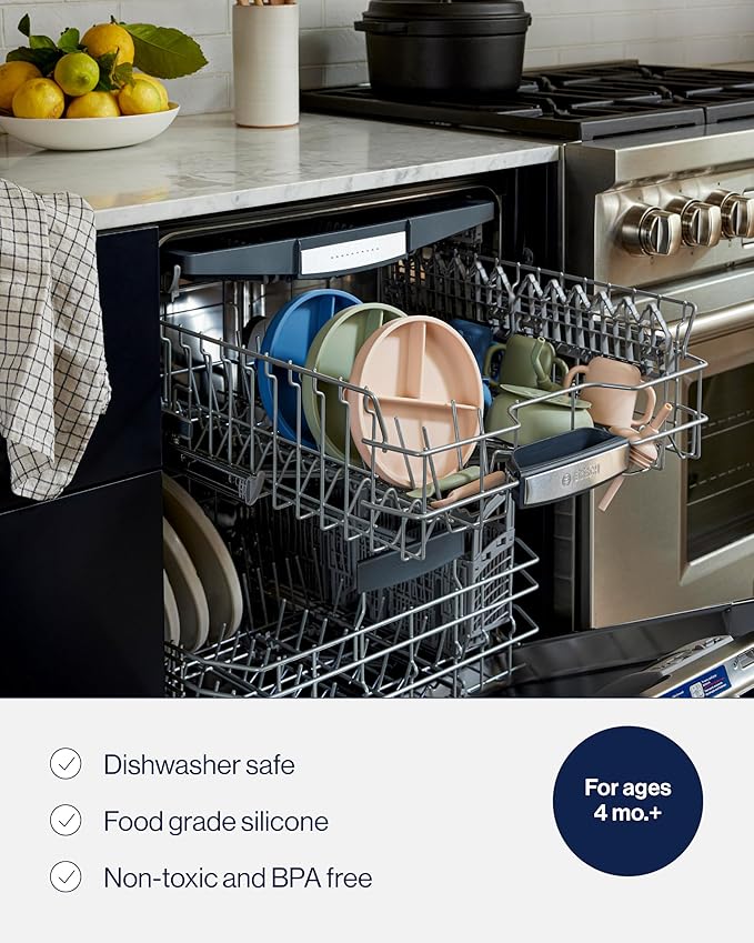 - SAFE & EASY TO CLEAN: Our baby silicone feeding set is made from food-grade silicone. All pieces are dishwasher safe or wipe clean with warm soapy water for quick tableware cleanup.