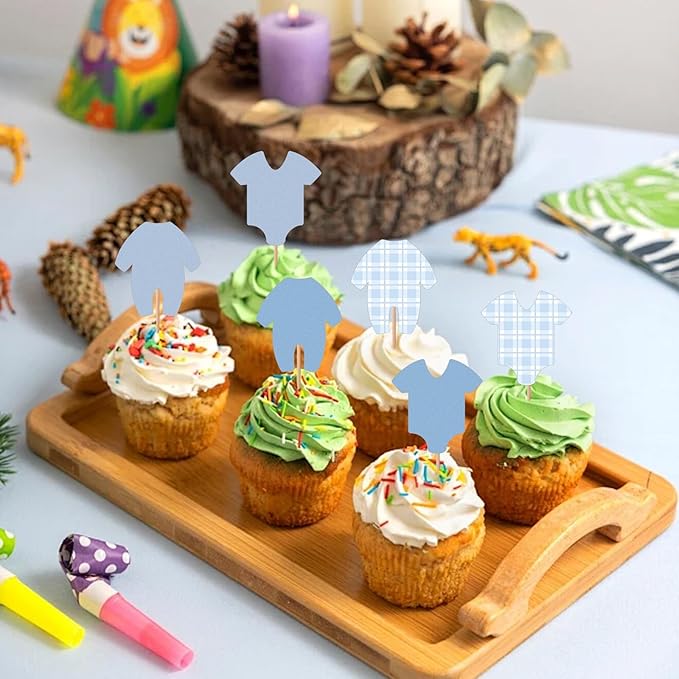 - 【Easy To Use】These baby boy cupcake toppers bamboo skewers come pre-assembled, eliminating the need for extra time and effort; you can simply insert them into cupcakes, cakes, or other desserts. This saves you a significant amount of party preparation time, allowing you to focus on other important things. As a practical party decoration suitable for baby boys, these skewers are neither too long to affect the appearance of cupcakes nor too short to be difficult to insert.