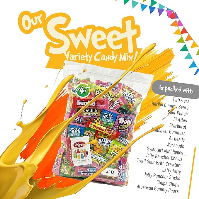AGIF Sweet Variety Candy Mix 2 Pounds – Assorted Fruity, Sour & Chewy Treats – Individually Wrapped Candy Mix for Parties, Christmas, and Sharing