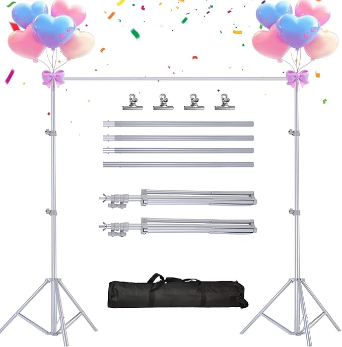 - 【Multi-function Photography Stand】Designed to serve multiple functions, this backdrop stand is well-suited for photography studios and various shooting locations. Primarily used as a backdrop stand for photography, it also proves to be versatile by providing a sturdy support system for decorating with balloons, curtains, and bunting flags at parties, weddings, and festivals.